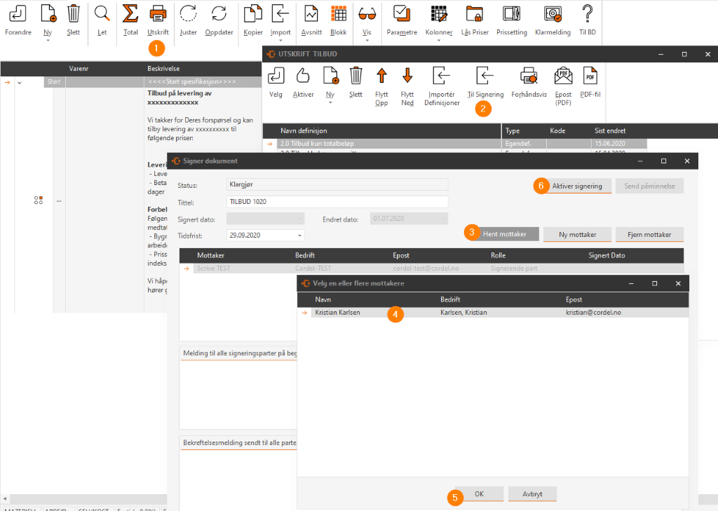 Slik sender du tilbud til elektronisk signering fra Cordel