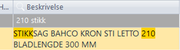 - Du kan også stå i kolonnen beskrivelse og søke på vareteksten. Skriv varebeskrivelsen og trykk enter.