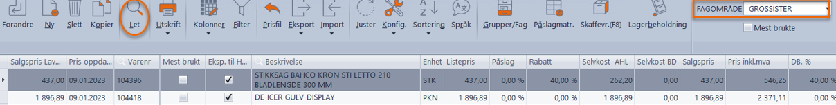 - Stå i vareregisteret og trykk på Let.
