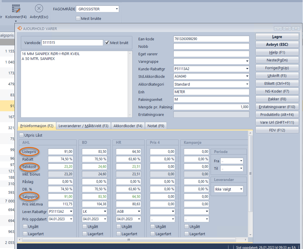 Det er disse prisene vi vil kunne benytte videre ved opprettelse av tilbud og ordre. Hvilke/hvilken pris som benyttes defineres i kalkulasjons-/ ordremetoder.