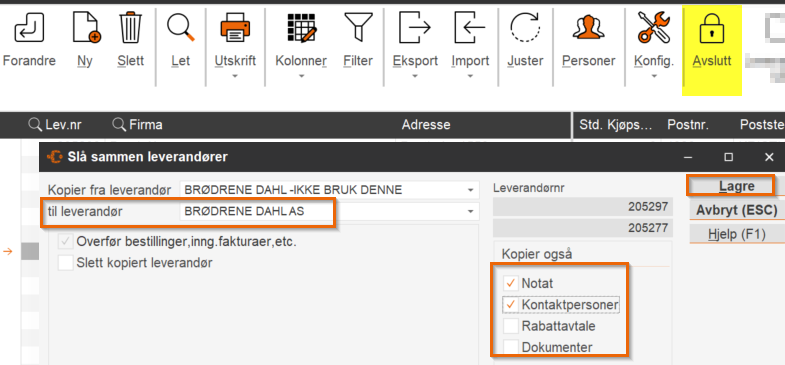 - Velg leverandøren du vil kopiere FRA og tast Ctrl+S på tastaturet.