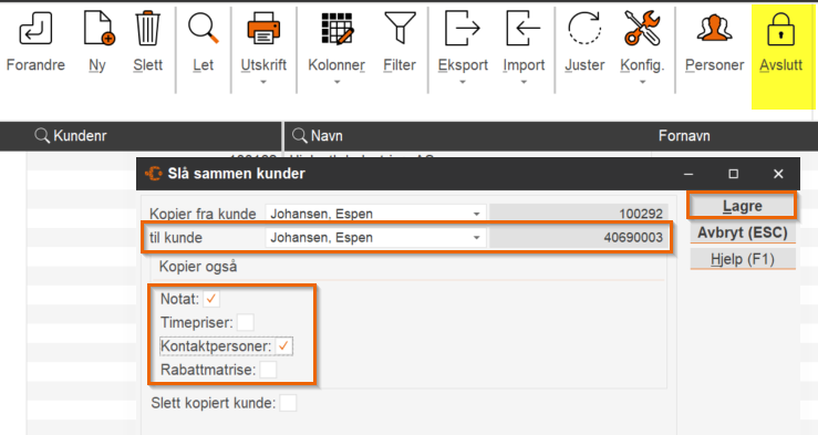 Slik slår du sammen 2 kunder: