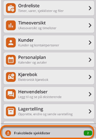 For å navigere til frakoblede sjekklister i offlinemodus, trykk på menyvalget «frakoblede sjekklister». Du vil da få opp en oversikt over tilgjengelige sjekklister, inndelt per ordre.