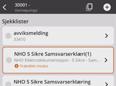 - Søk opp og gå inn på ønsket ordre fra ordrelisten. For å legge til og fylle ut sjekklister trykker du på ikonet «Sjekklister» i toppmenyen.
