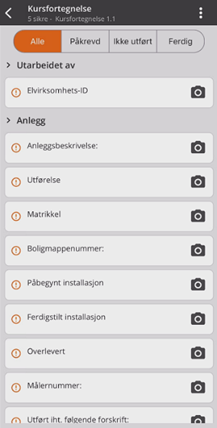 - Synk & åpne – laster opp endringer gjort i frakoblet modus og synkroniserer med systemet (Krever nettilgang.) Og åpner sjekklisten for videre behandling.