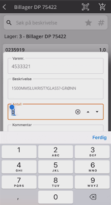 Viser det seg at du trenger å legge til flere varelinjer trykker du bare på «Varer» og legger inn neste vare, før du igjen trykker på «Lagertelling» når du er ferdig med å legge inn varer.