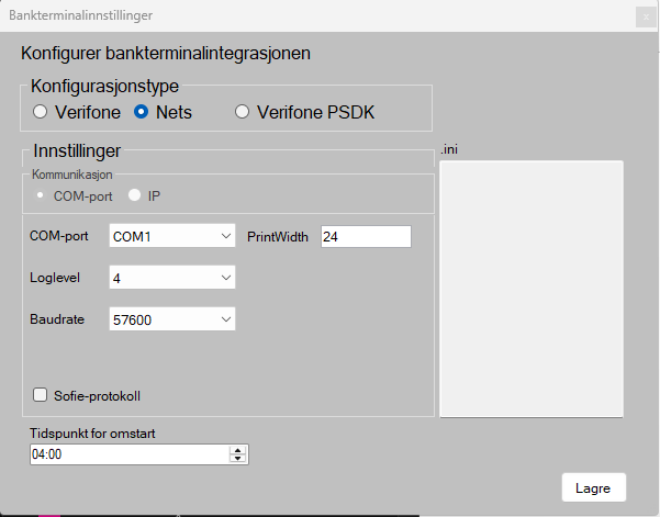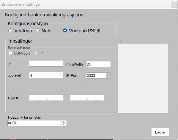 Verifone terminaler kommunisere over IP Velg Verifone PSDK. Nets terminaler støttes over COM-port eller virtuel COM-port via USB.